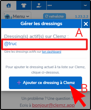 Le nouveau dressing lié n'est pas activé par défaut. Il faut aller sur Clemz pour le faire (lire ci-dessus).