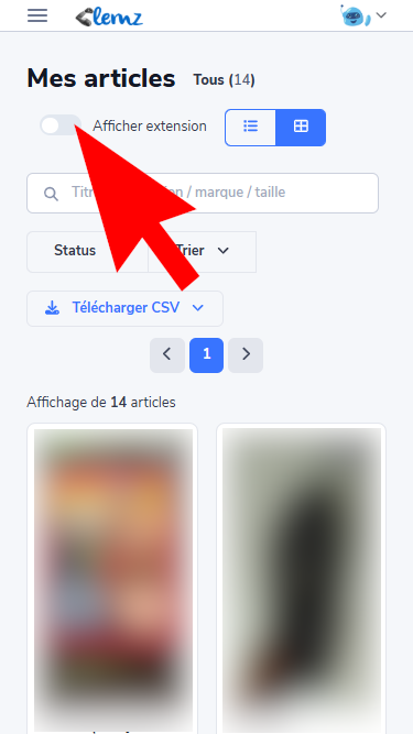 Pour vérifier que Clemz a la bonne correspondance entre votre annonce sauvée et son équivalent dans votre dressing Vinted, il suffit de :
