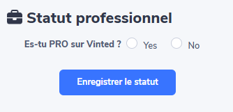 Allez à la page Paramètres du module "Ventes" en cliquant sur "Mes ventes" puis "Paramètres". Il ne vous reste alors qu'à indiquer à Clemz si vous avez le statut professionnel sur Vinted.